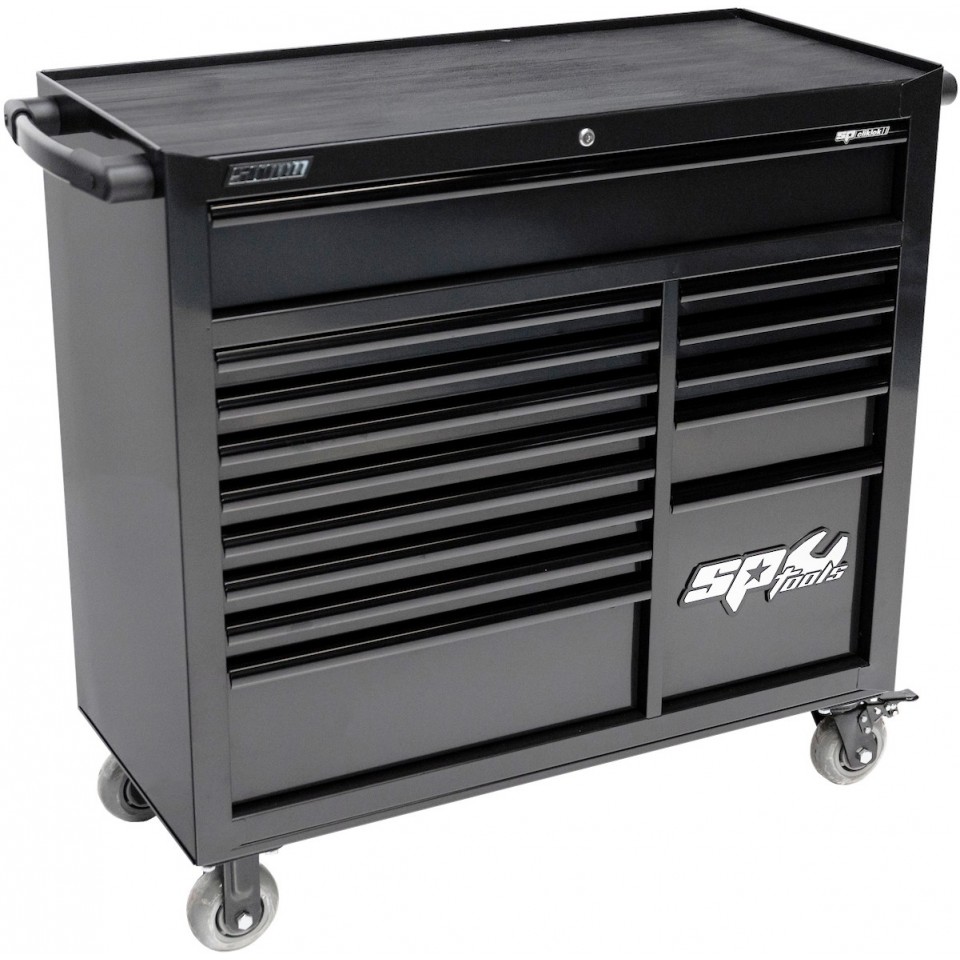 The Custom Series Roller cabinets from SP Tools are the tool carts you can always count on. With their sturdy construction and famous American appearance and quality, these carts are the perfect partner for your workshop. The heavy double-wall construction allows the tool carts to have a top load capacity of up to 200 kg.