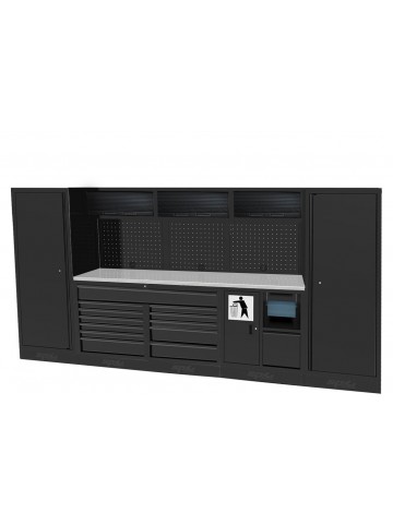 Configureer dit product!USA Workshop Series on täysin modulaarinen seinäjärjestelmä. Koko, koostumus ja asettelu ovat täysin muokattavissa. Näin luodaan työtila, joka voidaan räätälöidä täsmälleen yksilöllisten tarpeiden ja käytettävissä olevan tilan mukaan. Tämä ylellinen ja tehokas ratkaisu on valmistettu erittäin paksusta teräksestä, joka on viimeistelty kaksinkertaisella UV-kestävällä jauhemaalilla suojaavaksi. Tämä yhdistettynä "keittiötyylisiin" pehmeästi sulkeutuviin laatikostoliukuihin tekee tästä täydellisen ammattimaisen kalusteen työpajallesi.