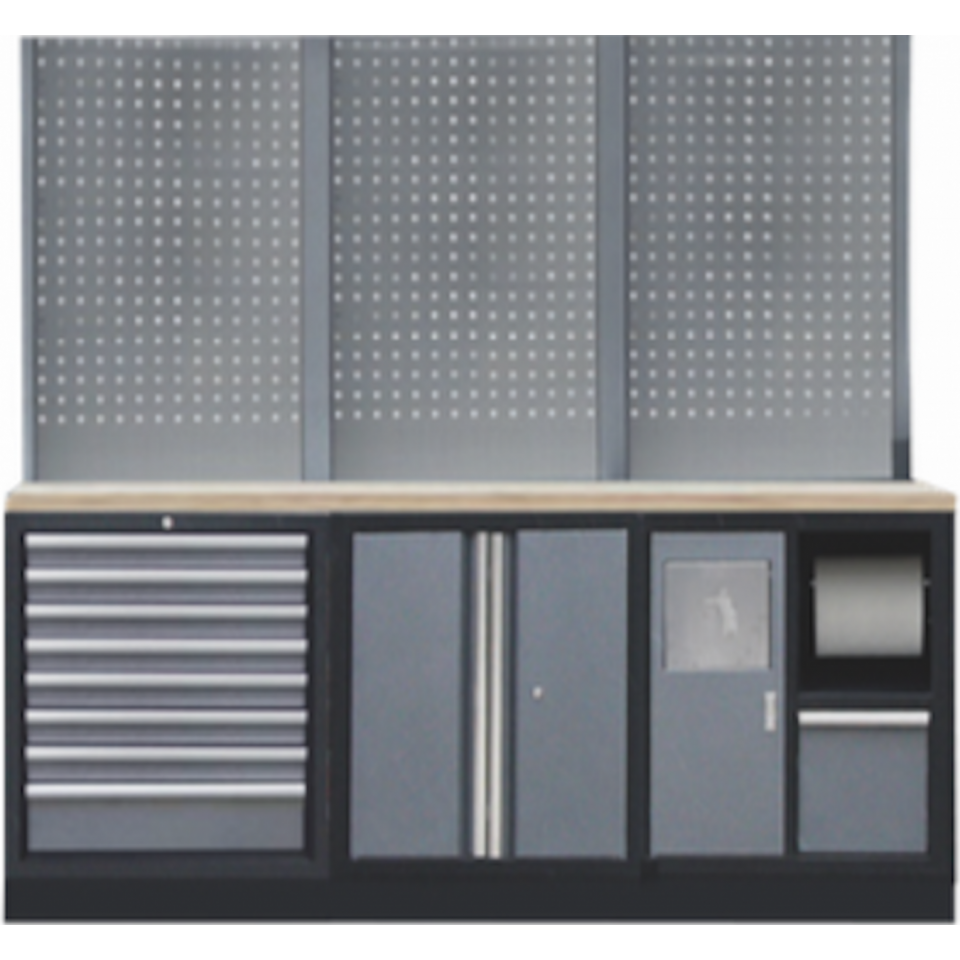 SYSTÈME MURAL PROFESSIONNEL POUR GARAGE 3 PANNEAUX ARRIÈRE AVEC PLAN DE TRAVAIL EN ACIER INOXYDABLE