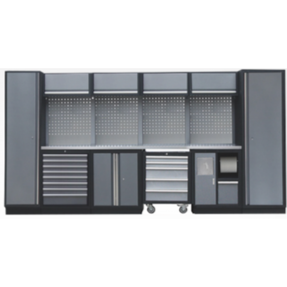 SÉRIE GARAGE PROFESSIONNEL AVEC 4 PANNEAUX D'APPUI ET 2 ARMOIRES HAUTES