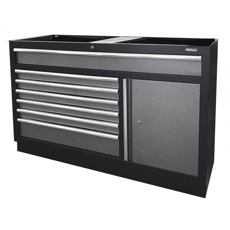 ARMOIRE NOIR/GRIS LARGE AVEC TIROIRS ET PORTE, SANS DESSUS