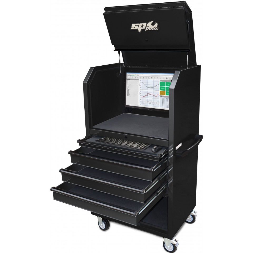 Outre l'espace et la force, ce chariot à outils offre également de nombreuses possibilités. En fait, avec le passage de câble d'alimentation intégré et les tableaux magnétiques, cette série est parfaite pour une utilisation avec divers équipements de diagnostic. Par exemple, vous pouvez facilement accrocher un écran sur le mur arrière et monter une imprimante à l'intérieur du caisson.