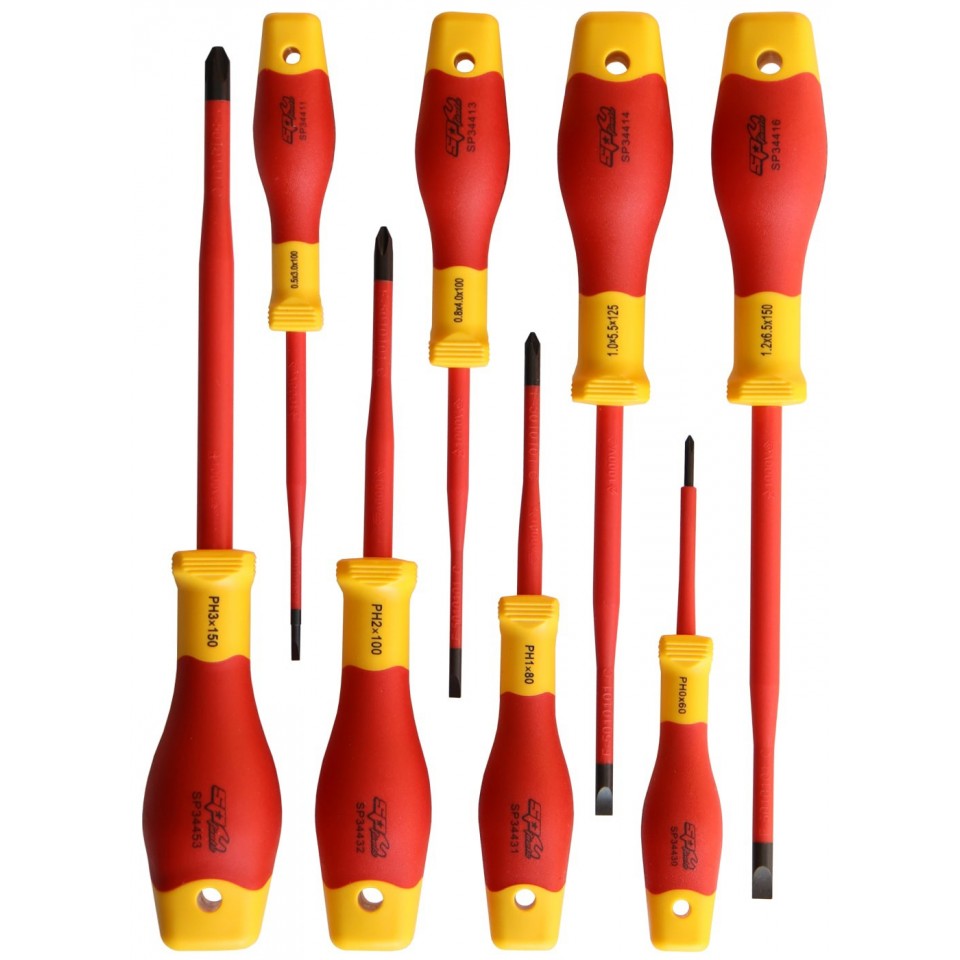 De eerste 4 schroevendraaiers in deze set zijn sleufschroevendraaiers, perfect voor het omgaan met stopcontacten, schakelaars en andere live elektrische componenten. De platte bladpunt maakt snelle en gemakkelijke invoer in klemmenblokken en andere soortgelijke toepassingen mogelijk.