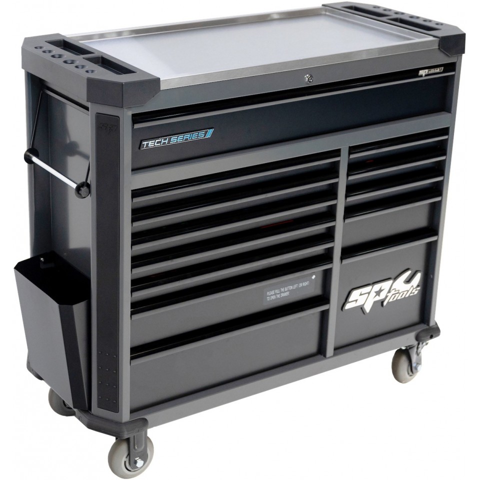 Kortom, de Tech Series gereedschapswagen van SP Tools is de perfecte aanvulling op je werkplaats. Met zijn robuuste constructie, luxe uitstraling en verschillende handige functies ben je verzekerd van een optimale werkruimte. Bestel nu en maak het jezelf gemakkelijk!